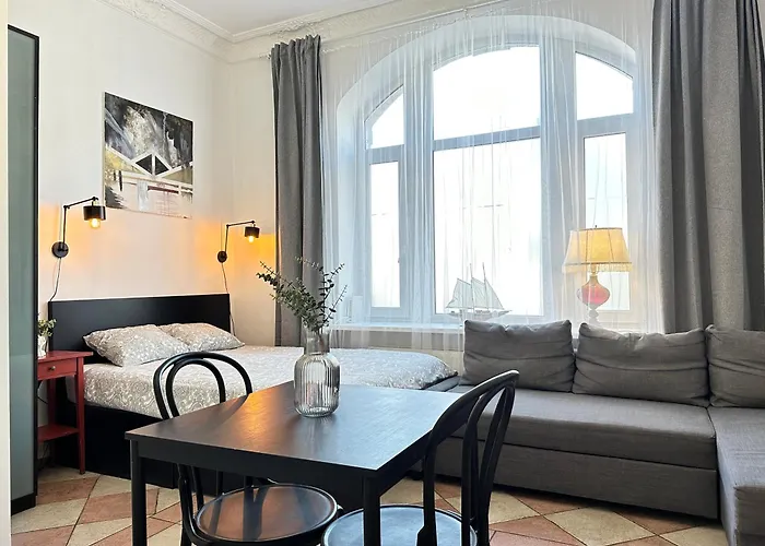 - ❓Wat zijn goede eetgelegenheden in de buurt van het appartement?Restaurants in de buurt van het appartement zijn onder andere Hashi Sushi Sopot en Whiskey On The Rocks.